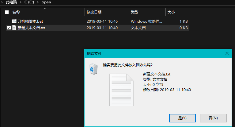 将其另存为\"开机锁脚本.bat\"文件,删除原来的文本文件,
