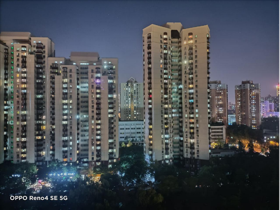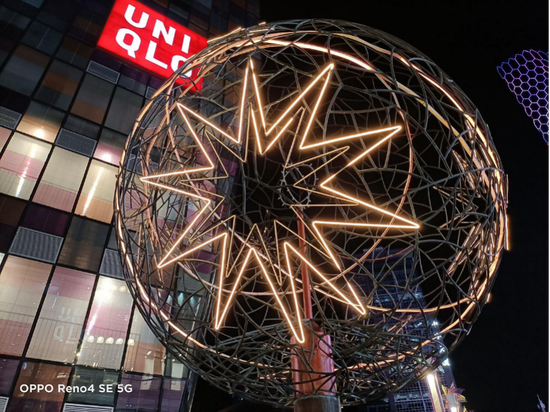 我们再来看看夜景方面的表现,OPPO Reno4 SE的夜景模式具有快速多帧合成技术,出片速度较快,拍照效果在普通夜景上表现不错,能够有着很好的场景还原能力,背景表现也相当纯净,噪点控制尚可,在非常黑暗的环境下表现有些力不从心。不过该机拍照功能强大,比如这个角架模式就可以通过更长的曝光时间来极大提升夜景拍照效果,该模式下拍出的照片已经能够与专业设备相媲美了。