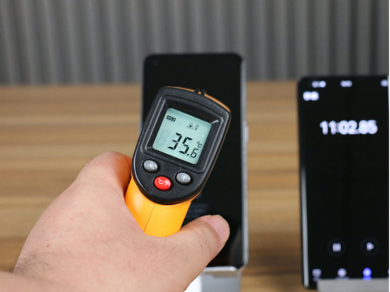 OPPO Reno4 SE不但充电快,充电安全性有多种防护措施。充电发热量控制也很好,充电10分钟过后整机温度开始稳定下来,此时的正面最高温度为35.6度,侧边触摸手感温热,对持机手感没有影响,边充边用毫无压力。
