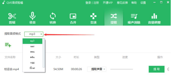 不想要整个视频,只想要视频中的音频部分,就可以用qve音频剪辑来提取。它提取前,还可以根据自己的需要来设置提取音频的格式,而且提取的速度非常快。