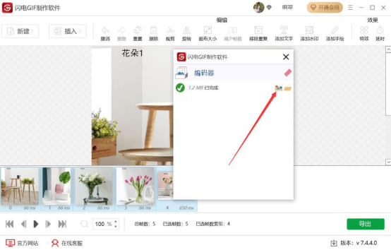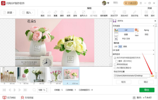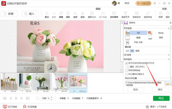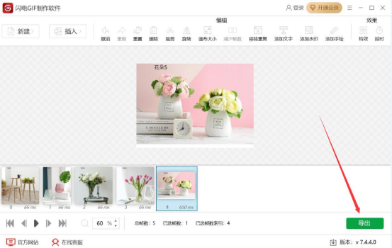 7.回到闪电GIF制作软件操作主界面,点击右下方的“导出”按钮。