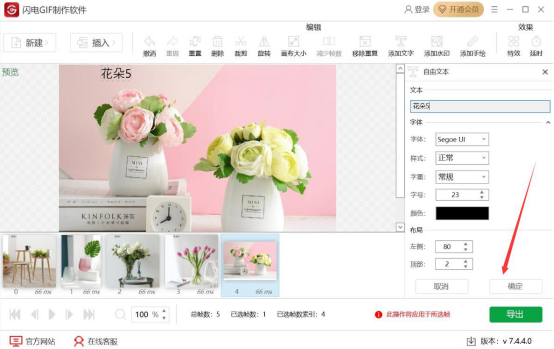 4.同样的方法,我们给剩下的图片分别添加对应的文本内容,点击“确定”按钮,完成图片制作GIF动图的文字编辑环节。