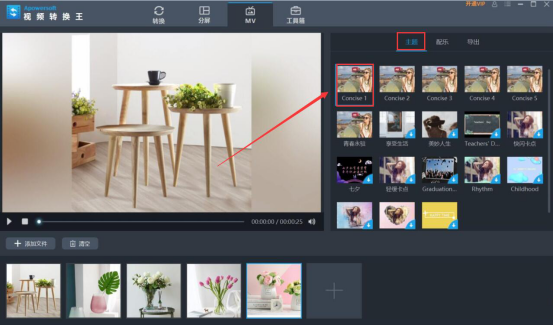 想要给图片制作成MV,达到自己预想的宣传效果,可以用视频转换王来实现。视频转换王内置有丰富的主题模板,能满足我们的个性化需要。