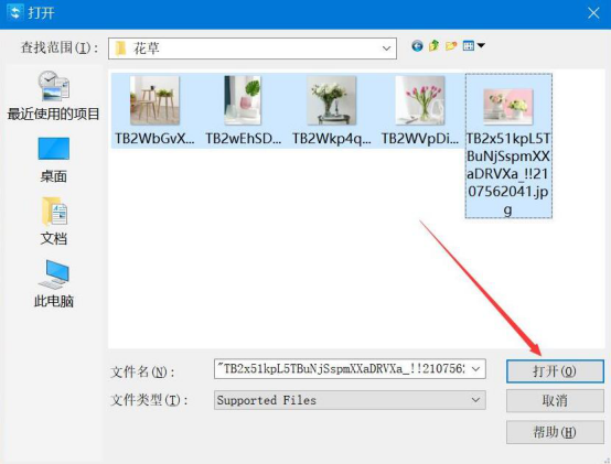 2.在弹出的窗口中,将需要制作成MV的图片选中,点击“打开”按钮,即可将其导入视频转换王。