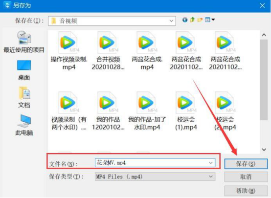 8.在弹出的窗口中,我们选择视频转换王制作好的MV保存路径。重命名该MV,为了方便以后文件的查找,再点击“保存”按钮。