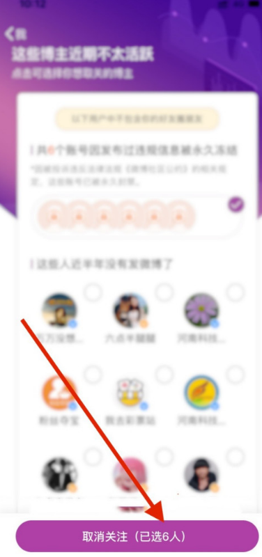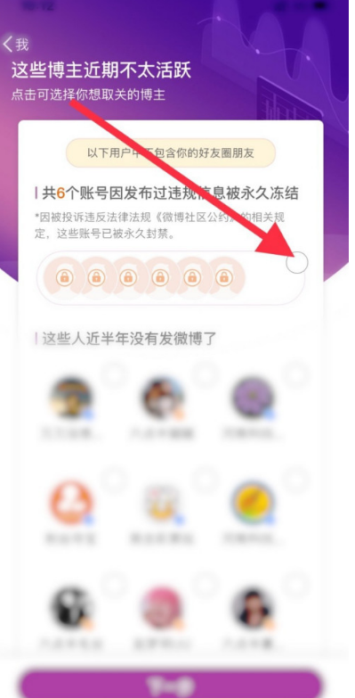 新浪微博如何快速取关冻结账户?