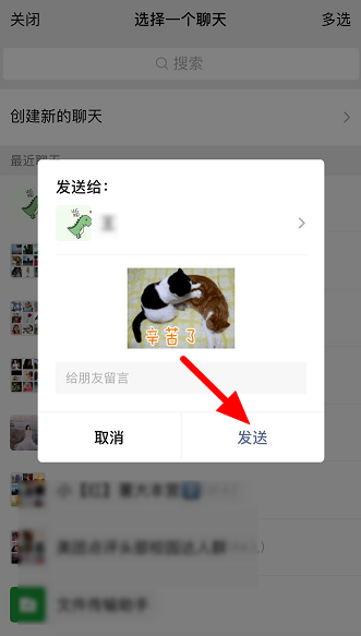 选择需要发送表情包的微信好友或群聊,点击【发送】即可。