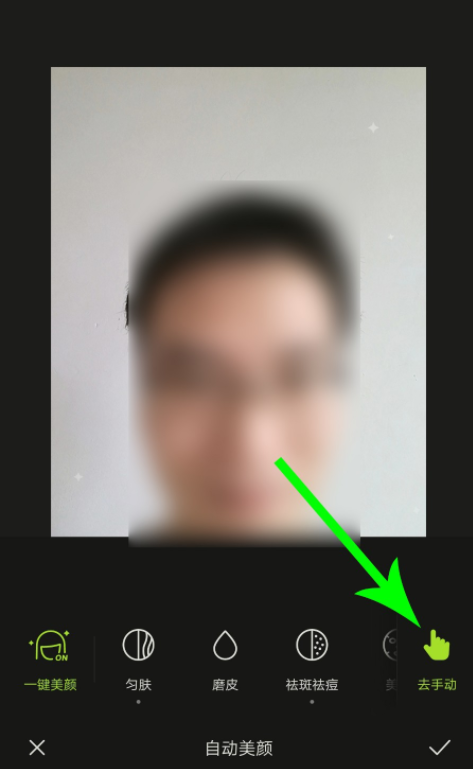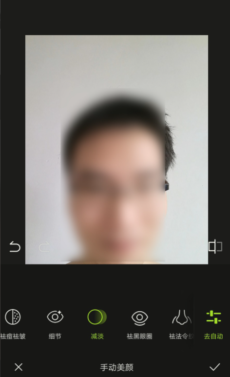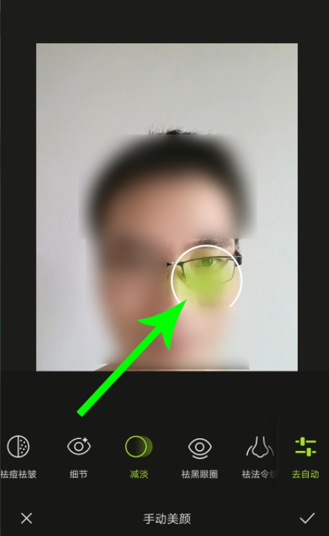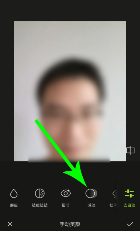 现在进入自动美颜界面,点击【去手动】,选择减淡工具,