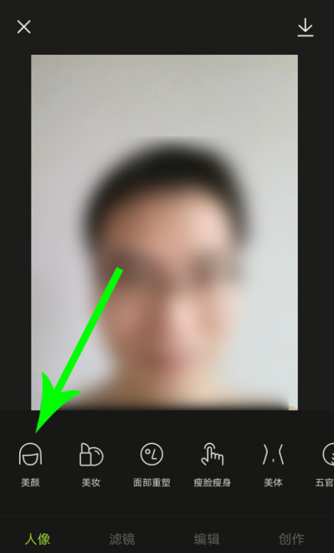 导入人像照片,进入编辑窗口,点击【美颜】功能,