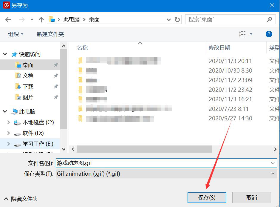 6、接下来,在弹出的另存为窗口中,我们选择视频做成GIF动态图后的保存路径,并点击“保存”按钮。