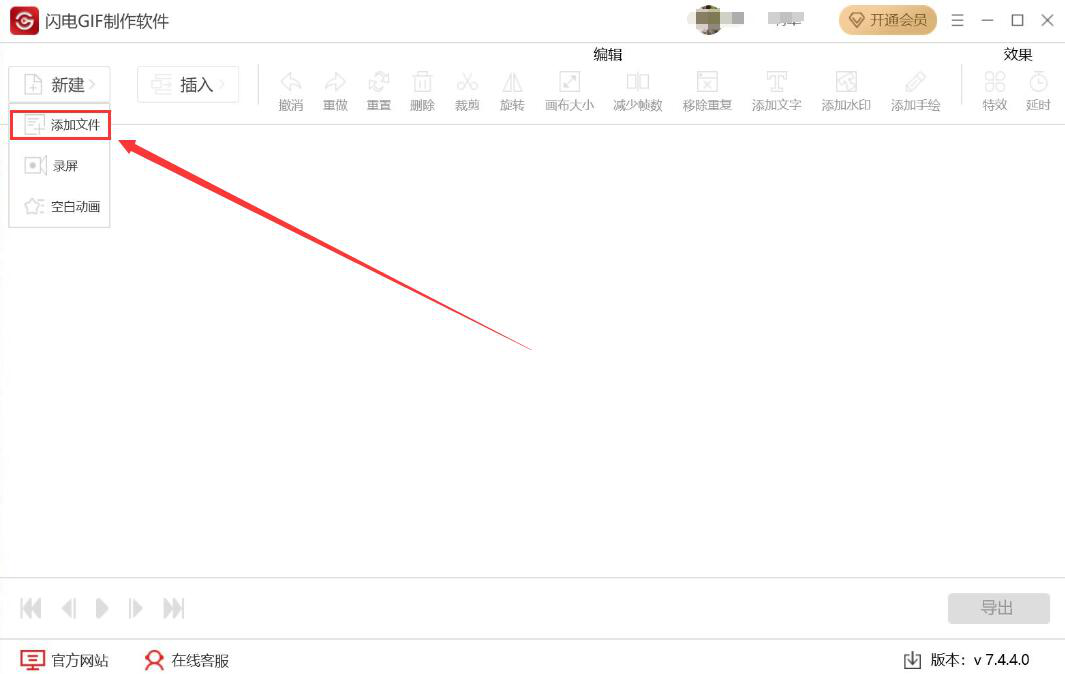 1、首先,我们打开闪电GIF制作软件,在操作界面左上方点击“新建”菜单中的“添加文件”选项。