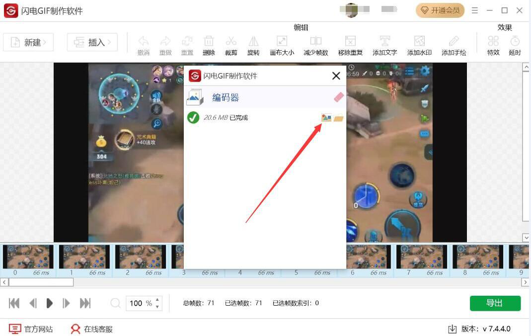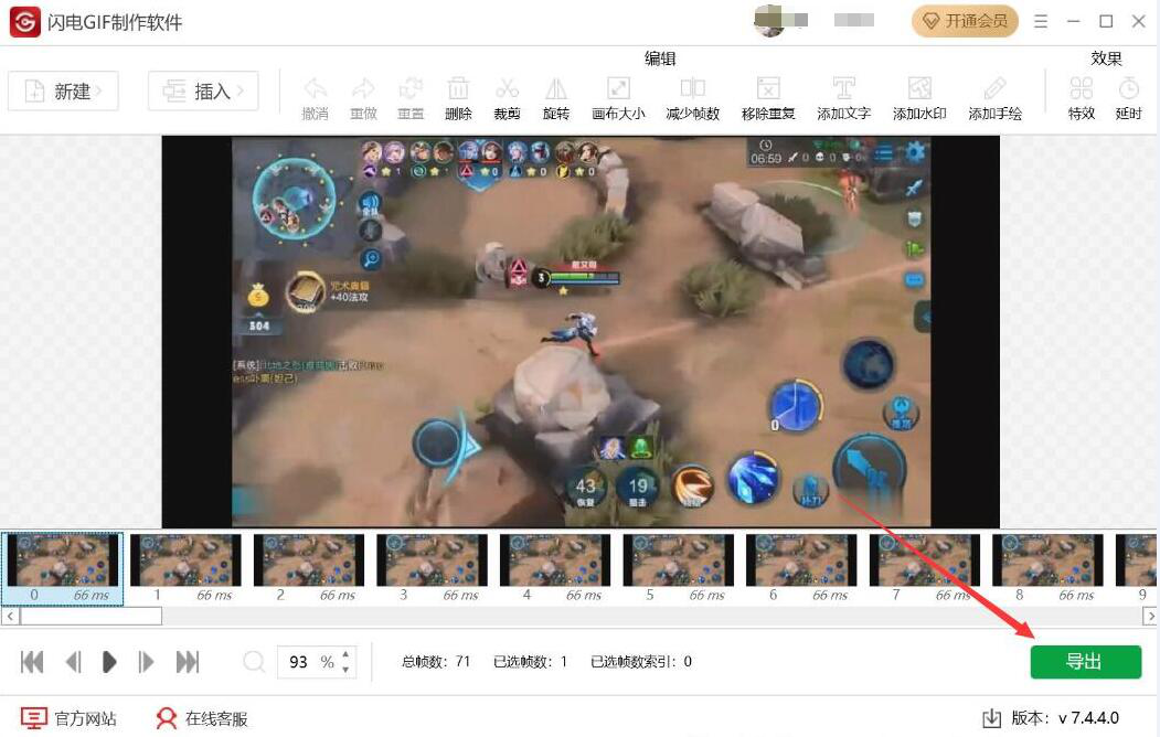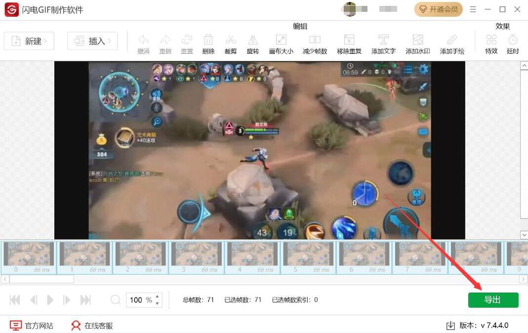 4、回到闪电GIF制作软件操作界面,点击界面右下方的“导出”按钮。