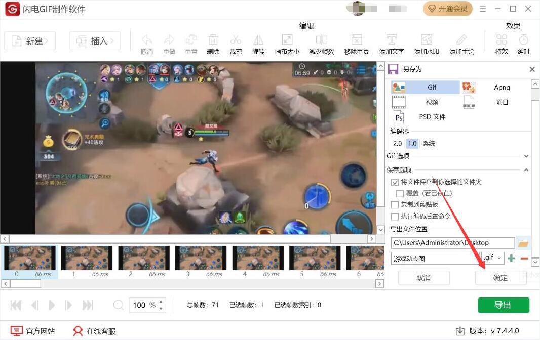 7、继续回到闪电GIF制作软件的另存为窗口设置,直接点击“确定”按钮。