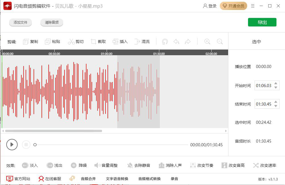 录制音频的时候,由于各种因素的影响,导致音频包含了一些不必要的片段,影响了音频时长,就可以用闪电音频剪辑软件将那些不必要的音频片段给剪切掉,操作简单,轻松获得自己想要的音频效果。