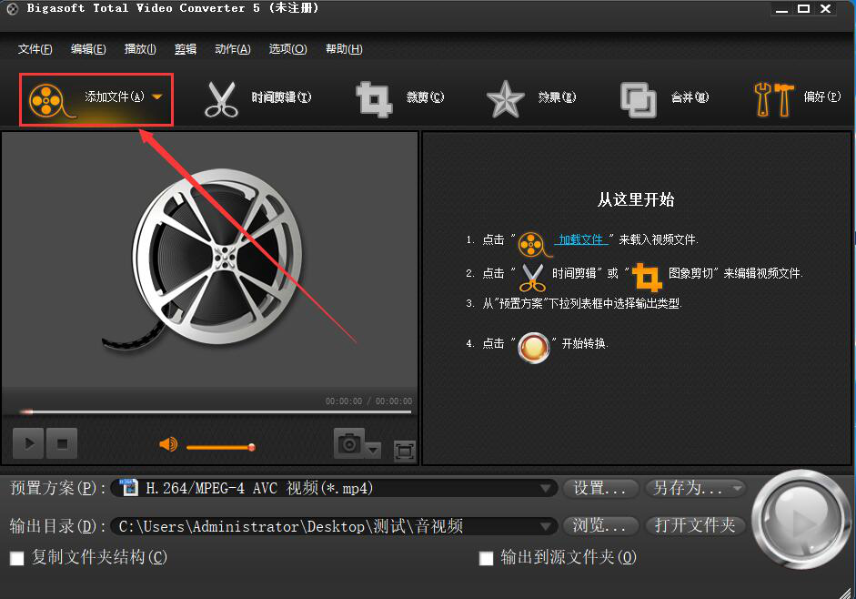 1、首先,我们打开Bigasoft Total Video Converter,点击界面左上方的“添加文件”按钮。
