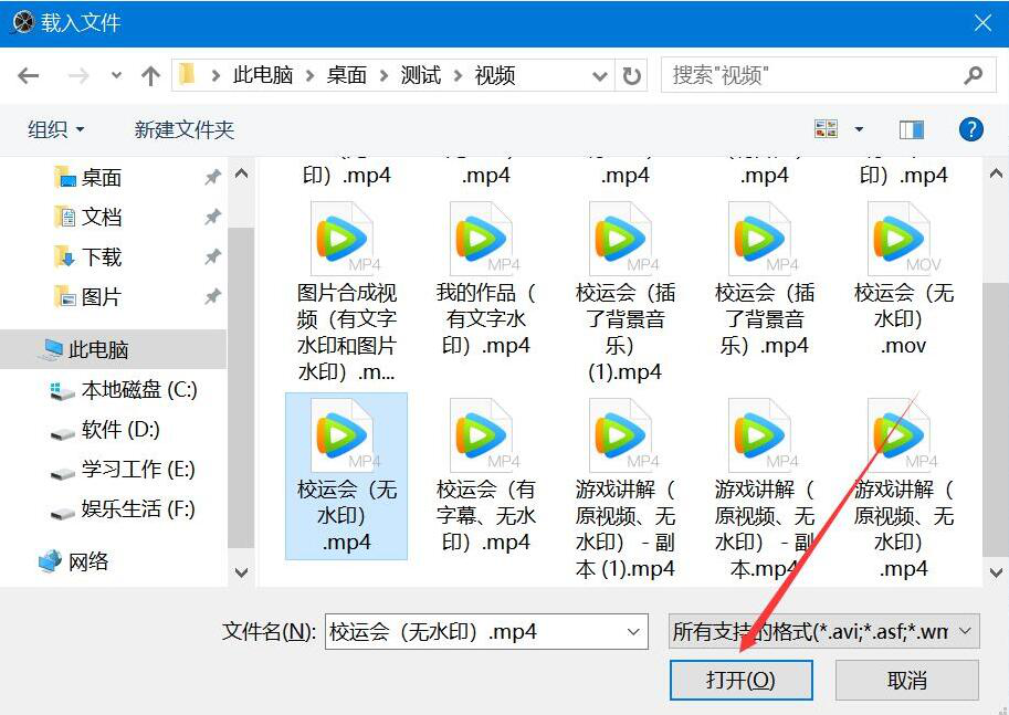 2、在弹出的窗口中,将需要变成黑白视频的彩色视频选中,并点击“打开”,将其导入Bigasoft Total Video Converter。