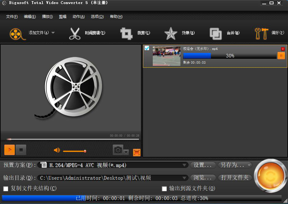 8、我们可以在Bigasoft Total Video Converter中实时了解转换的具体进度。