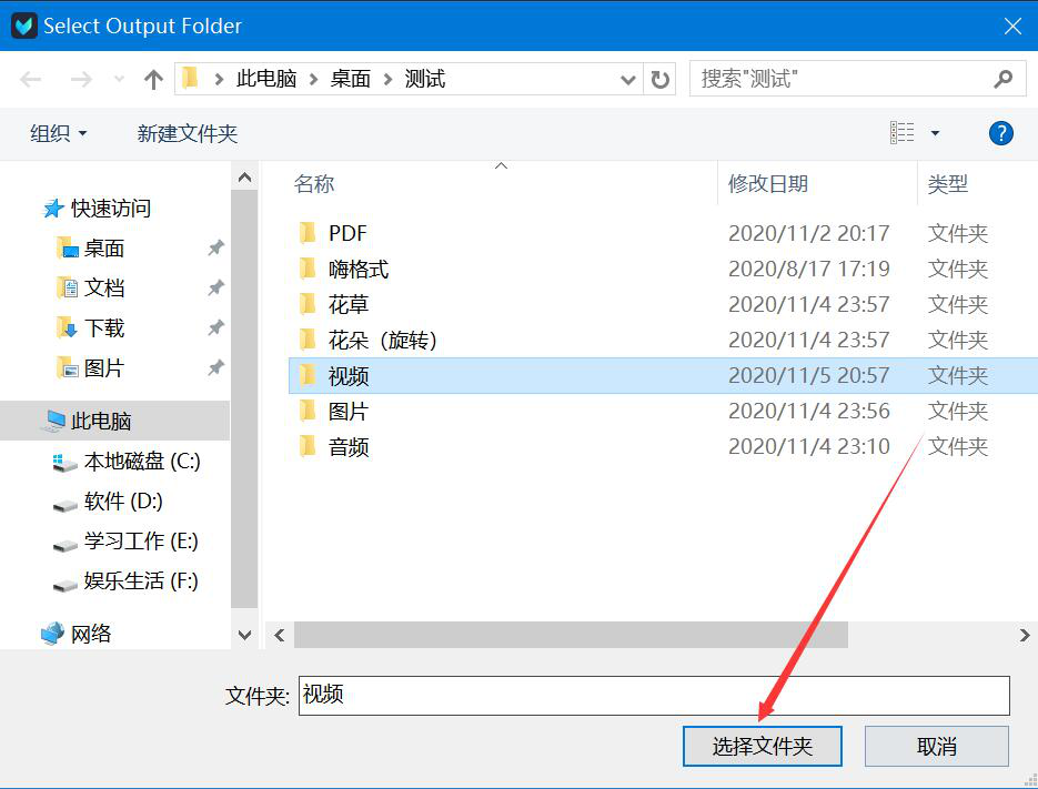 6、此时,Vidmore会弹出如下窗口,我们选择视频添加特效后的保存路径,并点击“选择文件夹”按钮。