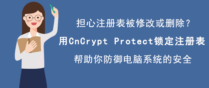 有时候,我们清理电脑程序,难免会因为误操作将和系统关键部位的注册表给删掉了,搞得整个电脑系统处于瘫痪的状态。为了保护电脑系统的安全,我们可以使用CnCrypt Protect锁定注册表。考虑很多人都不懂操作,所以,下面为大家讲解如何使用CnCrypt Protect锁定注册表,防止注册表随意被增删。