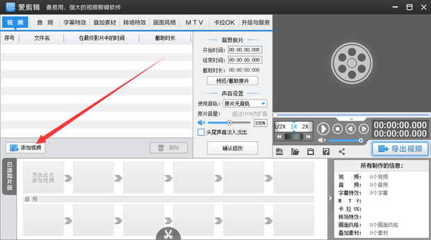 注意:这里也可以直接把视频素材拖拽到视频列表中。