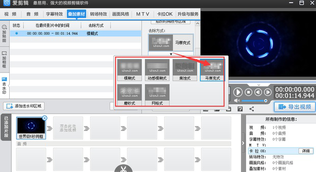 爱剪辑如何给视频添加马赛克?