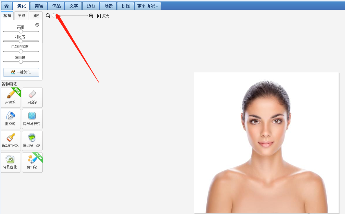 导入一张图片,如图,在顶部菜单栏点击【饰品】选项,