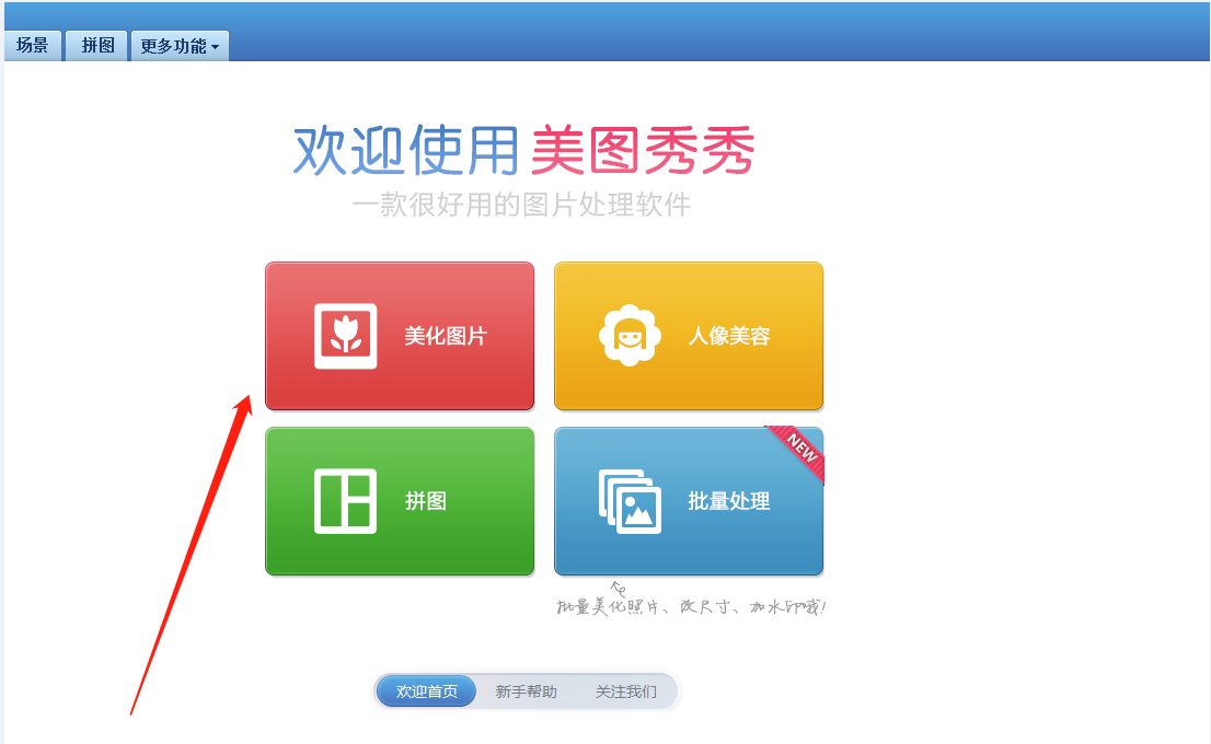 我们打开美图秀秀,进入界面,点击美化图片,