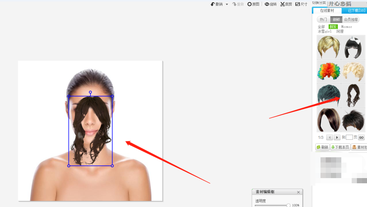 展开发型素材列表,选择自己喜欢的发型,点击之后就会在照片上显现,