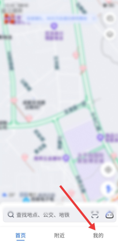 在手机中打开高德地图,进入首页,点击右下角【我的】,