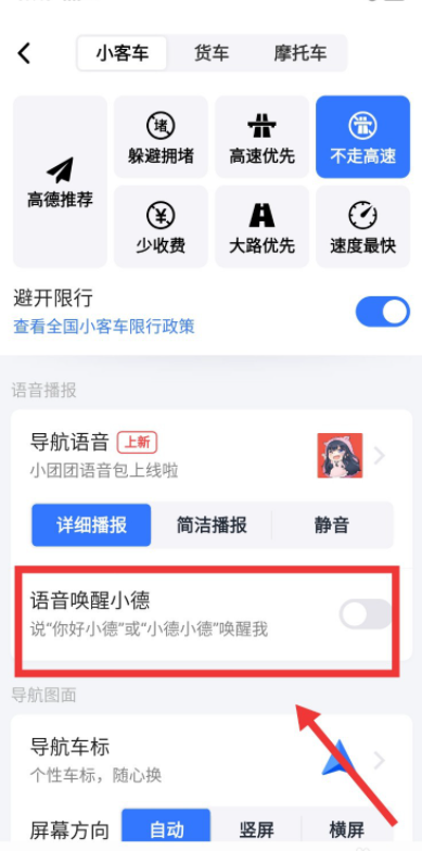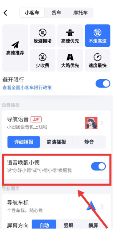 进入设置界面,点击【导航设置】,如图,选择【语音唤醒小德】,开启该功能,