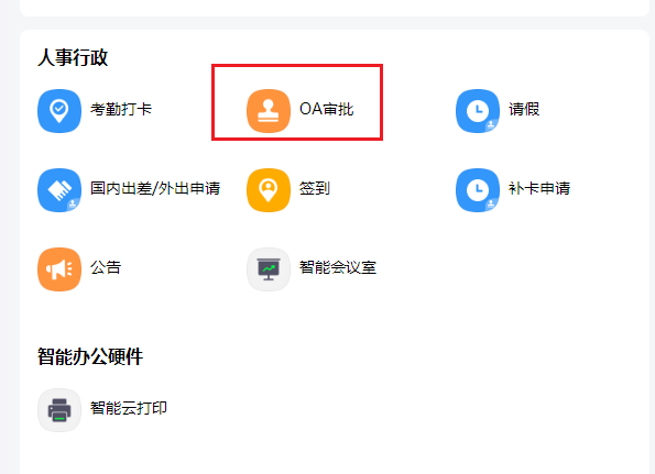 展开工作台,如图,点击【人事行政】——【OA审批】选项,