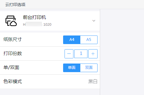 选择设置好的云打印机,点击打印,另外你还可以进行相关调整(纸张尺寸、打印份数等),
