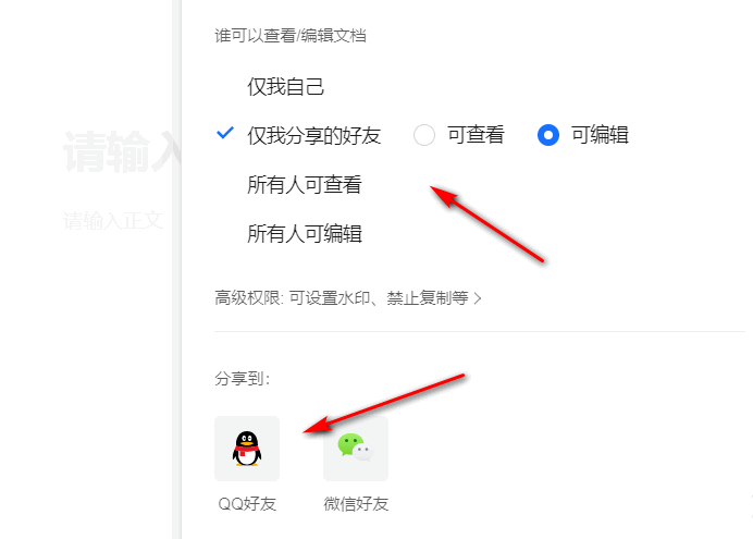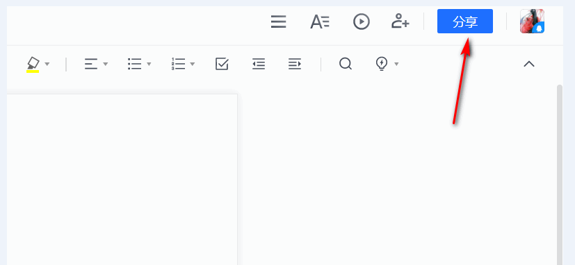 进入文档编辑窗口,点击右上角的【分享】图标,设置相关权限,确认谁可以查看编辑文档,