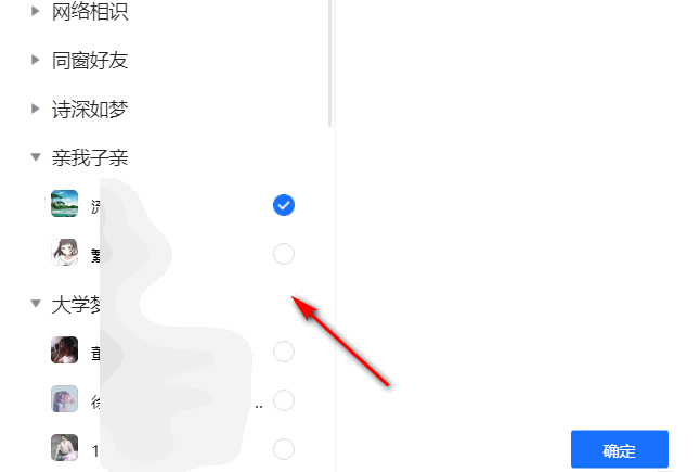 点击分享到QQ或者微信好友,这里选择QQ,如图,勾选联系人,进行确定,