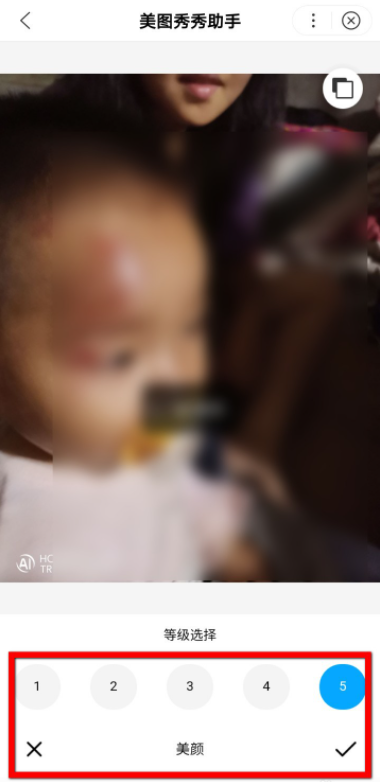 选择美颜级别,等待美颜完成,点击【√】,保存图片。