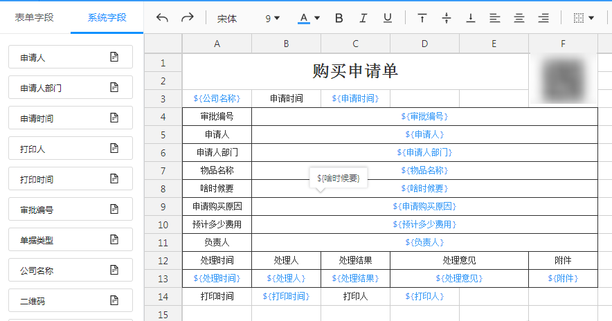 点击【编辑自定义模板】,进入模板编辑窗口,左侧为可以添加的控件,中间的表格可以根据自己的需求进行重新排版,