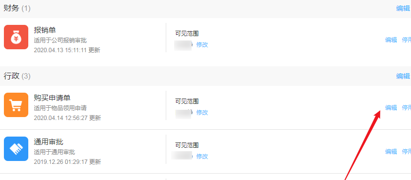 进入审批管理页面,找到需要编辑的表单,点击【编辑】选项,