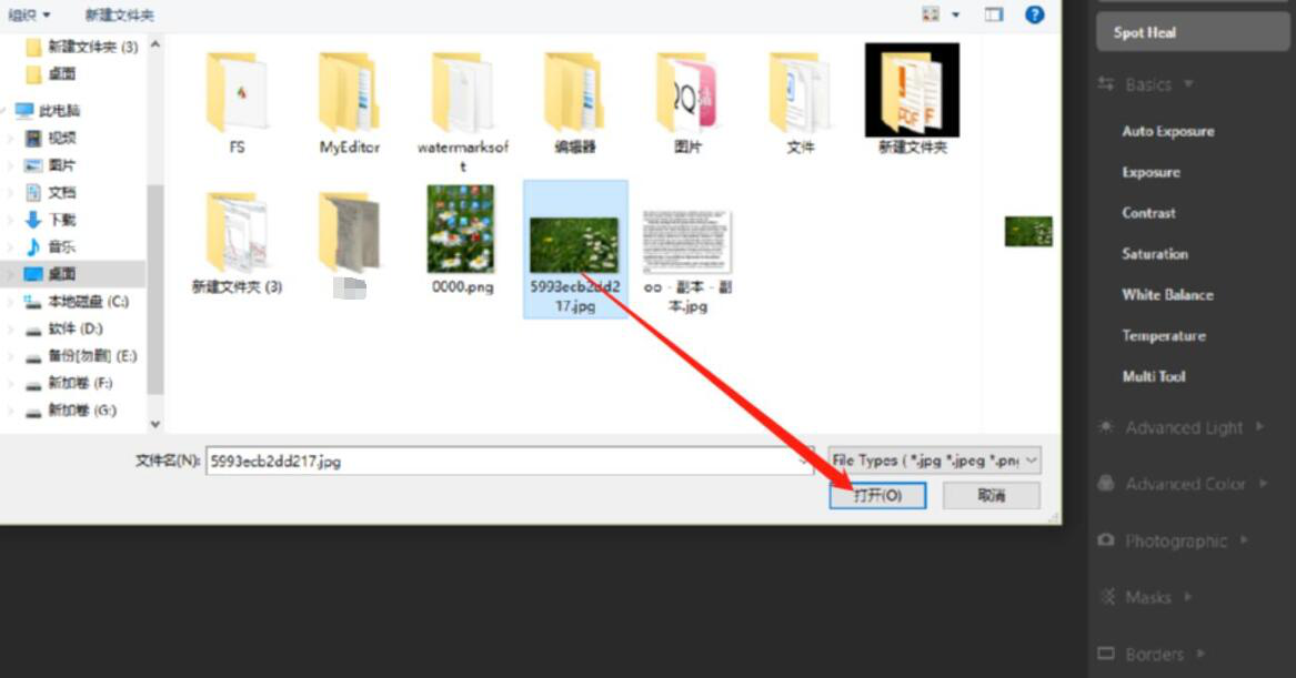 2、然后,在弹出的窗口中,将需要添加特效的图片选中,点击“打开”按钮,将它导入CameraBag Photo。