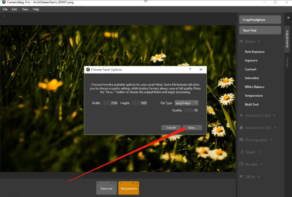 4、选好自己想要为图片添加的特效样式,我们可以通过拉动图片预览窗口下方的蓝色指针来调整特效的强度,越往右拉,特效的强度便会越强,调整完成,点击CameraBag Photo操作界面中的“Temperature”按钮。