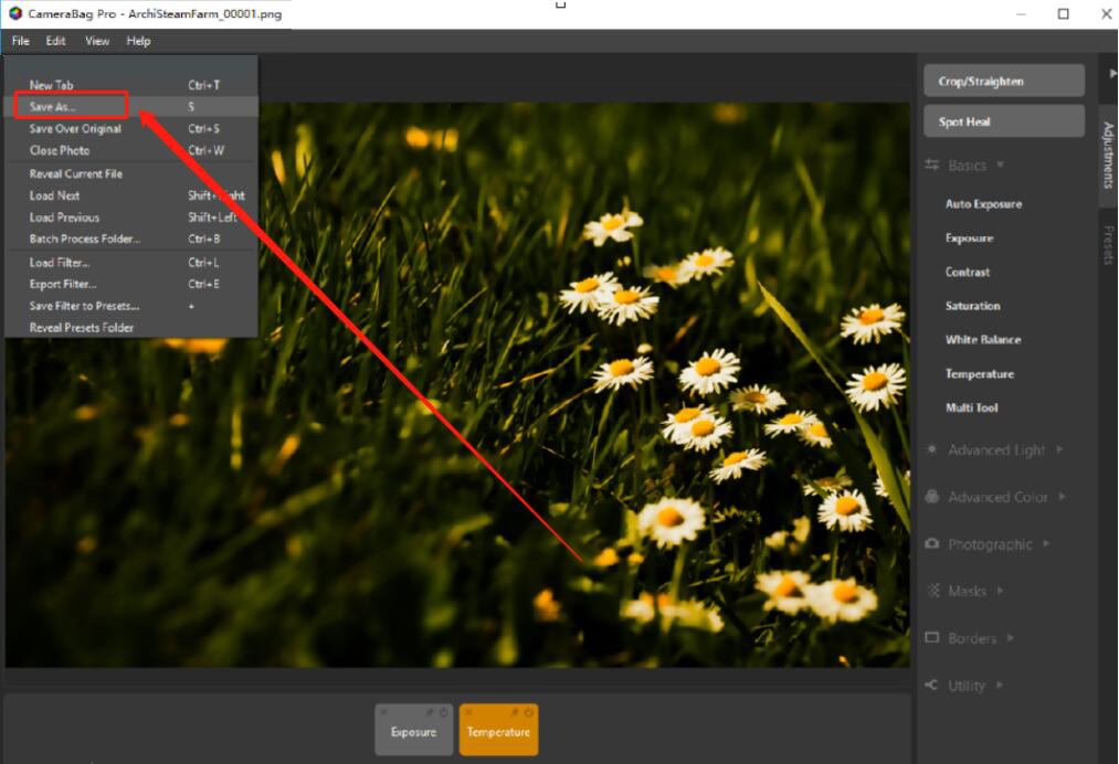 6、给图片添加的特效设置好了,我们点击CameraBag Photo的“File”菜单,并从弹出的菜单项中点击“Save As”选项。