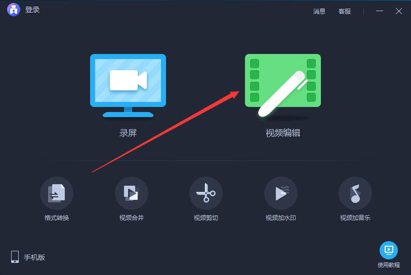 1、首先,我们打开爱拍,在其功能向导页面中点击“视频编辑”按钮。