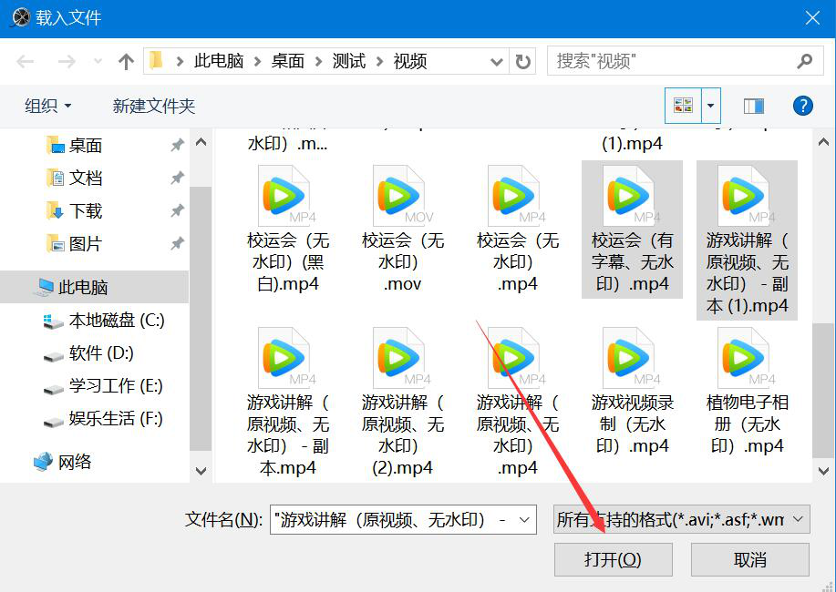 2、在弹出的窗口中,将需要合并的视频片段一并选中,点击“打开”按钮,将它们导入Bigasoft Total Video Converter。