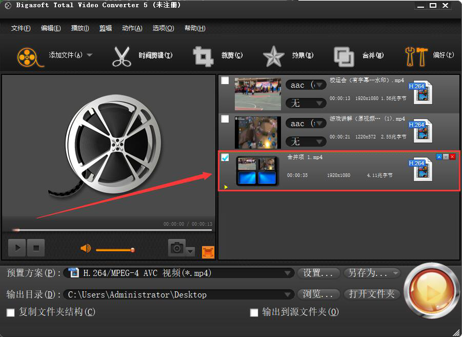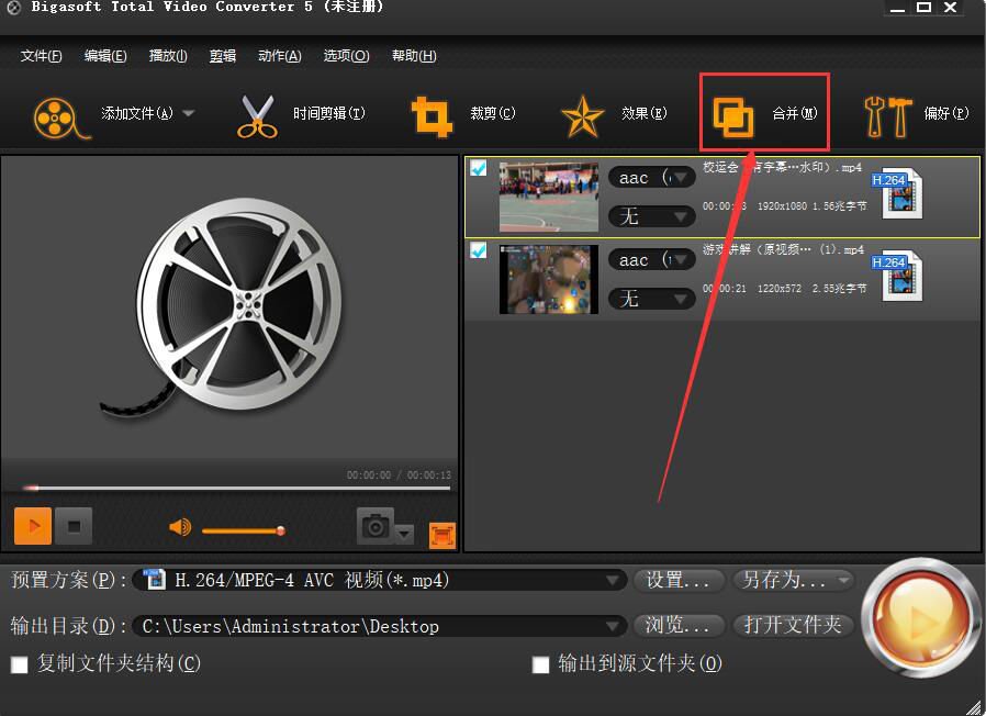 Bigasoft Total Video Converter如何合并视频?