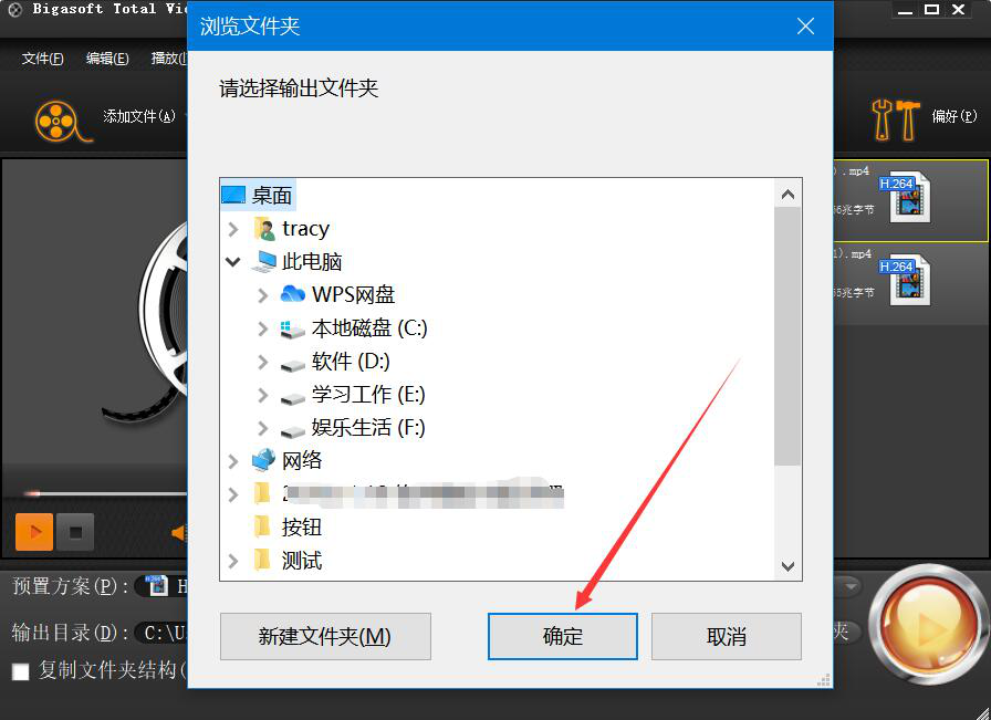 4、在弹出的窗口中,选择视频合并后的保存路径,再点击“确定”按钮。