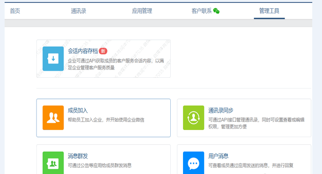 成功登录企业微信管理后台,如图,点击【管理工具】,