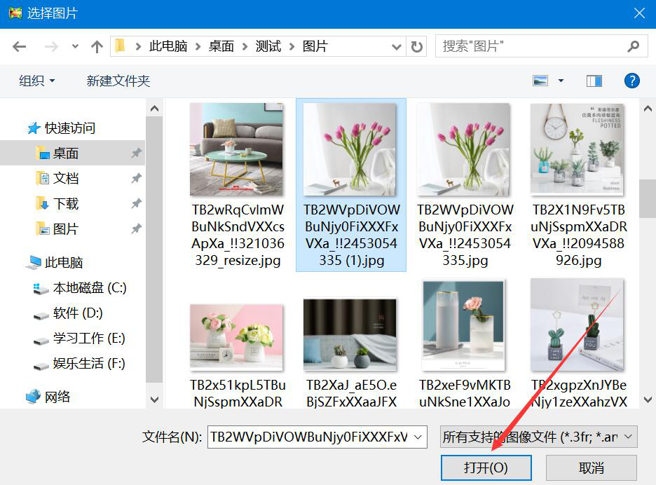 2、在弹出的窗口中,选择需要添加边框的图片,并点击“打开”按钮,将它导入Light Image Resizer。