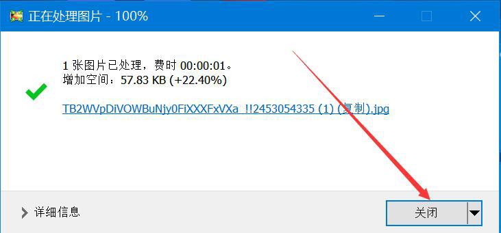 8、最后,如果弹出如下图的窗口提示,则说明Light Image Resizer已经成功地为该图片添加边框效果了。
