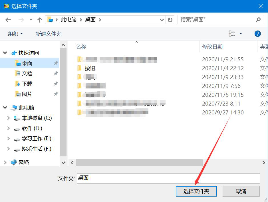 4、在弹出的窗口中,选择添加了边框效果的图片的保存路径,再点击“选择文件夹”按钮。