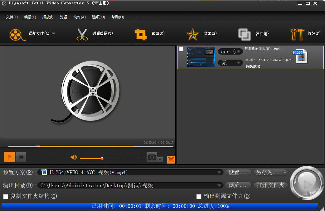 9、最后,当界面提示“转换成功”时,说明Bigasoft Total Video Converter成功地裁剪了视频并将新视频保存到指定路径了。
