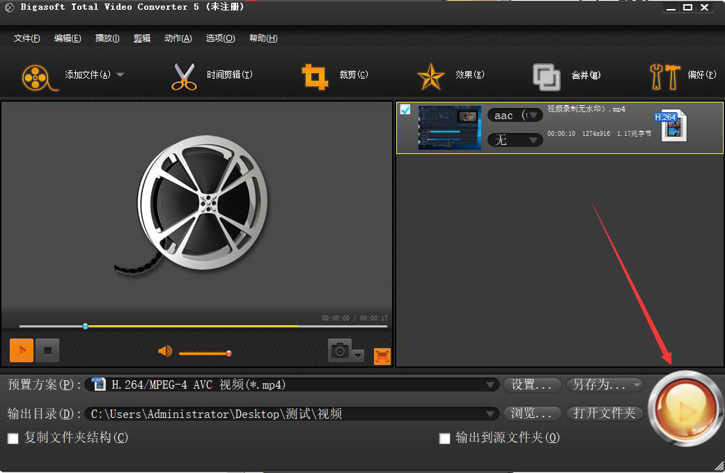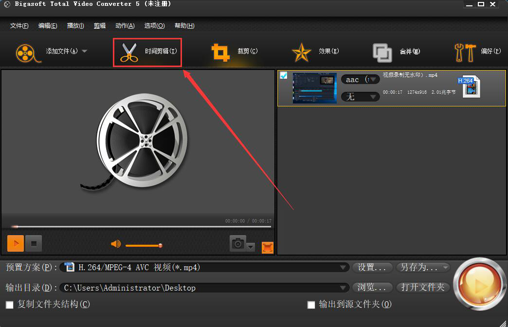 3、然后,回到Bigasoft Total Video Converter操作界面,点击“时间剪辑”功能按钮。